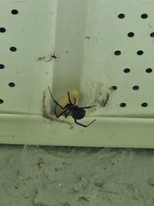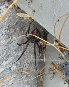 Look at that red! This pretty girl was found in Citrus Springs FL! The most recognizable part of a black widow is their beautiful red hourglass that sticks out against their obsidian skin, but there are many misconceptions about these beauties!! For instance, I’m sure you’ve been advised to stay far away from this venomous spider, but did you know it’s only the females who have venom? You can tell the difference as females are that almost void black with the hourglass, and males which are more brown or gray with red spots.